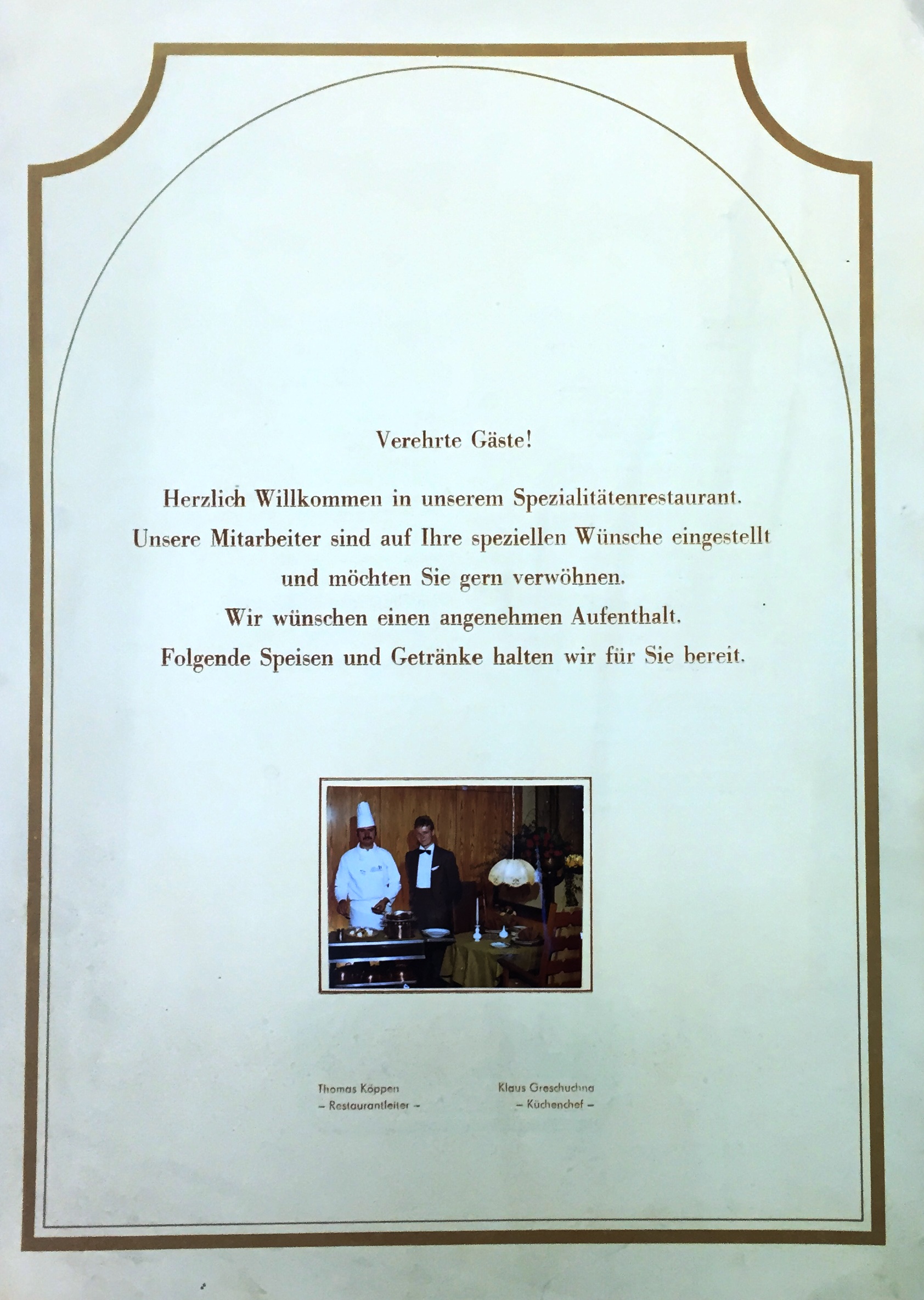 Warum Thiede im Besitz dieser – noch unberührten – Karten war? Er gestaltete in den 1980er Jahren das Corporate Design des Hotels, wozu auch die Speisekarten gehörten.