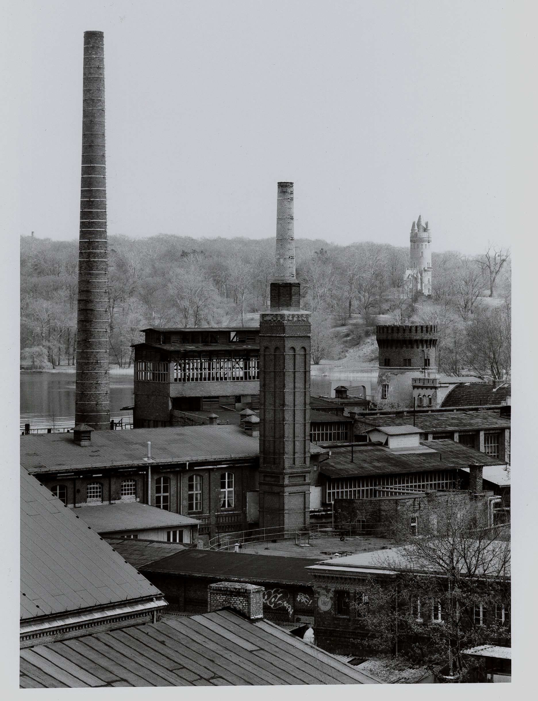 - Manfred Hamm: Blick über das Gaswerk Potsdam zum Flatowturm im Park von Babelsberg (C) Potsdam Museum, Forum für Kunst und Geschichte