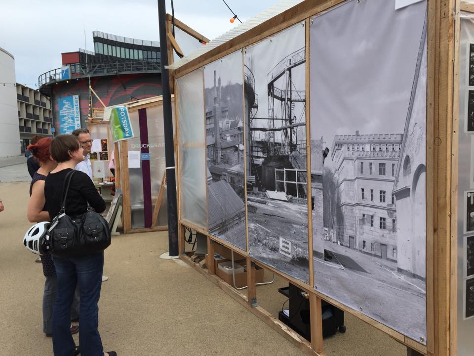 Mit unserer ZEITMASCHINE reisten wir in das Potsdam der 1990er Jahre, indem wir Fotos des bekannten Fotografen Manfred Hamm im Erlebniskörper zeigten. Die Fotos von Hamm, dessen Teilvorlass sich in der Sammlung des Potsdam Museums befindet, sind besonders reizvoll, da er die Stadt mit seinem „Blick von außen“ dokumentierte – in einer Zeit, in der viele Potsdamer Fotografen erst einmal die gewonnene Reisefreiheit genossen und ihren Fokus nur selten auf die rasanten Veränderungen in Potsdam nach 1989 legten. Hamm fotografierte vor allem zahlreiche stillgelegte bzw. bereits verfallene Industriebauten und Architekturdenkmale in Potsdam, darunter etwa die Areale der Schiffbauergasse oder der Potsdamer Dampfmahlmühle. Diese Bildmotive sind zu einem Großteil heute nicht mehr existent, die dokumentierten Gebäude abgerissen oder inzwischen saniert.