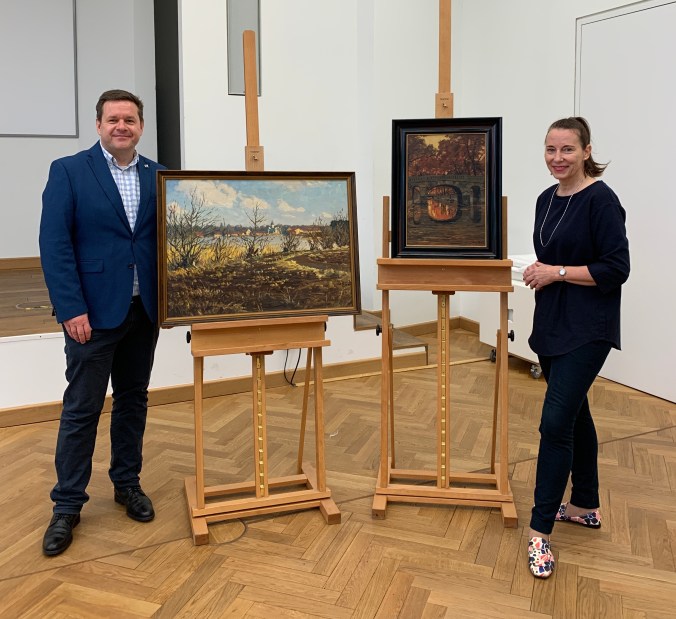 Darüber hinaus hat der Verein auch wieder eine Reihe von interessanten Objekten ankaufen und restaurieren lassen können. Am spektakulärsten war sicherlich der Erwerb eines Gemäldes mit der Potsdamer Kellertorbrücke. Das Bild des bekannten Potsdamer Malers Max Koch aus dem Jahr 1917 wurde Ende Januar in der beliebten ZDF-Sendung Bares für Rares an den Wiesbadener Händler David Suppes verkauft. Nach sofortigen Hinweisen aufmerksamer Zuschauer an uns und einer schnellen Verhandlung mit dem Händler, der noch weitere Interessenten aus Potsdam hatte, konnte das Bild für das Potsdam Museum gesichert und mit Hilfe von 41 privaten Spenden angekauft und restauriert werden. Die prominenteste Spenderin ist die schwedische Urenkelin des Künstlers Max Koch, Anna Öhman.